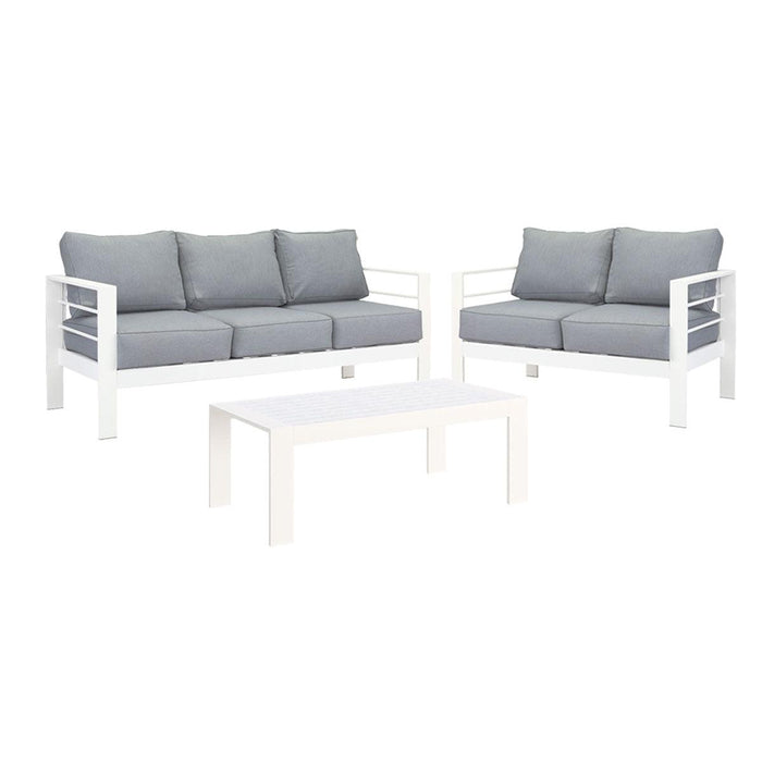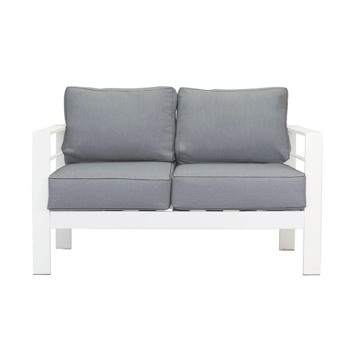 Available in a light grey and white powder-coated aluminum frame, the neutral color palette allows the Paris 5 seater Outdoor Lounge Setting to look great in any outdoor space.