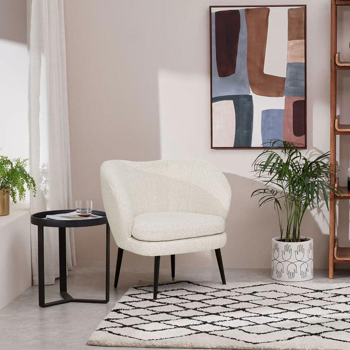 Perfect as a feature accent chair for your lounge, study or bedroom. Finished in light beige boucle upholstering for that luxurious feel. Make a statement with the stunning Sylvie Chair.